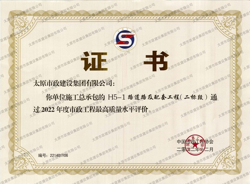 2022年度市政工程最高質(zhì)量水平評(píng)價(jià)_H5-1路道路及配套工程(二標(biāo)段)